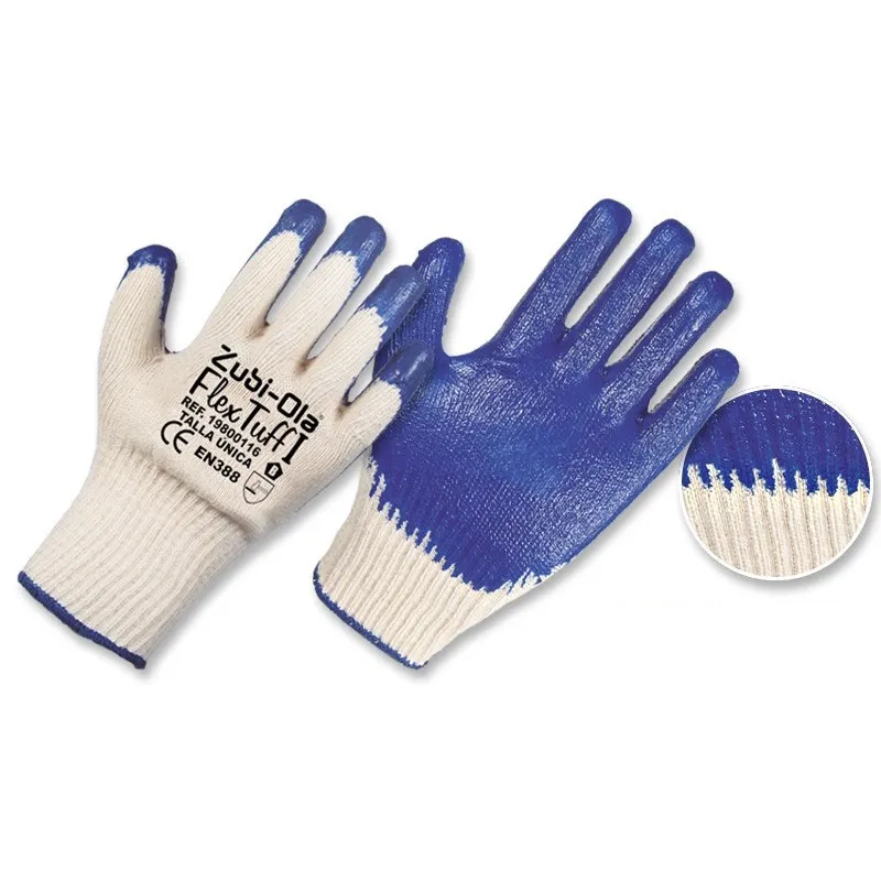 GUANTE HILAZA AMARILLO/AZULRECUBIERTO EN LATEX X PAR de primera calidad. Tu ferretería de confianza en el Valle del Cauca.